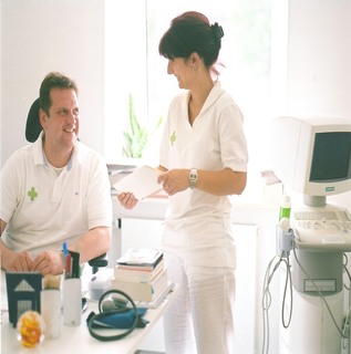 Die Räume sind hell in grünen Farben gehalten, die Ihrem Wohlbefinden dienen. Fotos und Bilder gestalten den Anblick abwechselungsreich. Im Wartezimmer helfen sie Ihnen, die Wartezeit angenehmer zu gestalten. Dort finden Sie auch aktuelle Informationen zu einzelnen Erkrankungen und Abläufen der ärztlichen Behandlung sowie Hinweise zu aktuellen Themen.